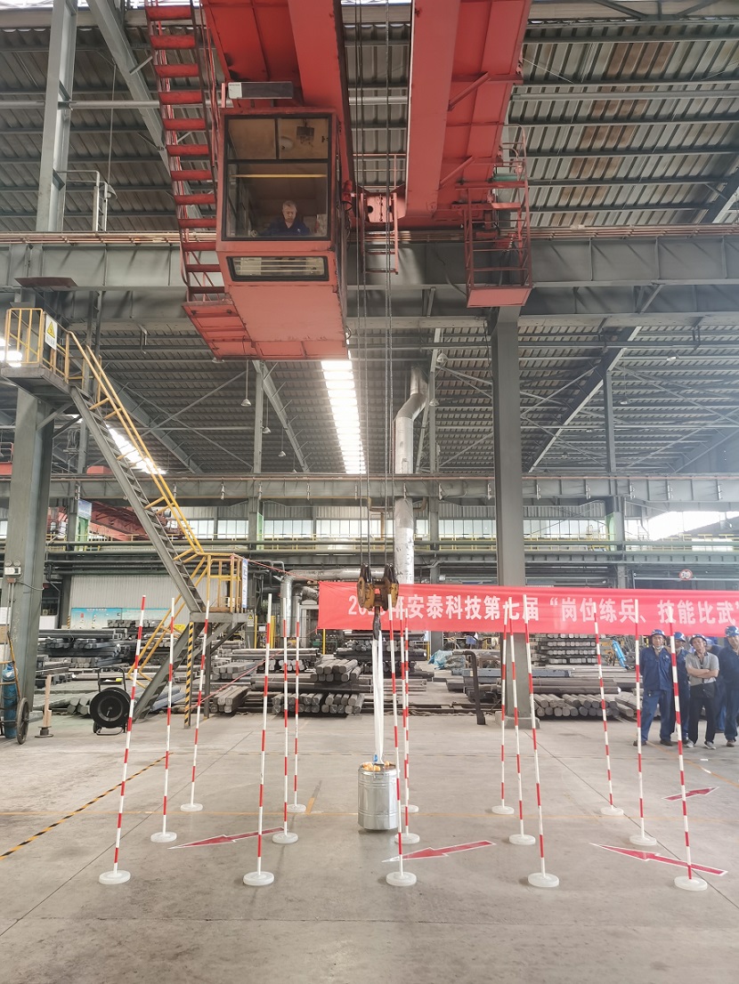 6月28日上午,安泰科技第七屆“崗位練兵,技能比武”(起重機)職業技能大賽活動在安泰河冶舉行;起重機作為重要的吊裝設備,通過技能競賽的方式激發職工立足本職崗位學技術、練本領、比技能的熱情,從而提高公司起重工的整體職業技能和安全操作水平;降低日常行車操作的安全事故事件風險,切實維護員工生命和公司財產安全。